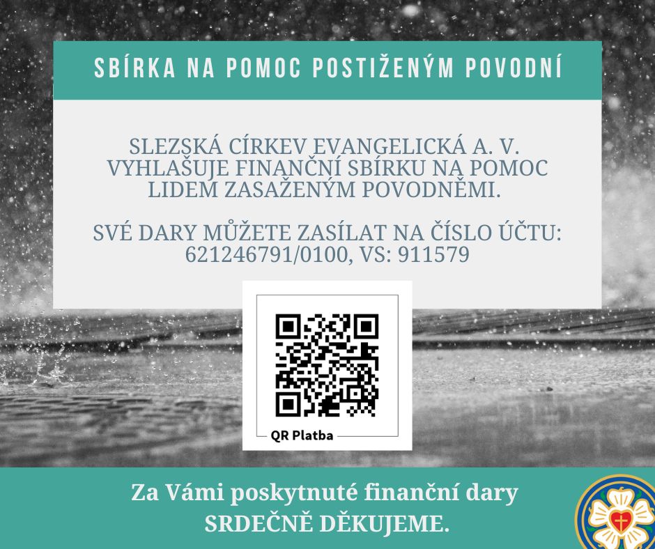 Slezská Církev Evangelická A.V. (SCEAV) vyhlašuje finanční sbírku na pomoc lidem zasaženými povodněmi. A také ve spolupráci se Slezskou Diakonií hledá dobrovolníky, kteří by mohli jet s praktickou pomocí do postižených oblastí.